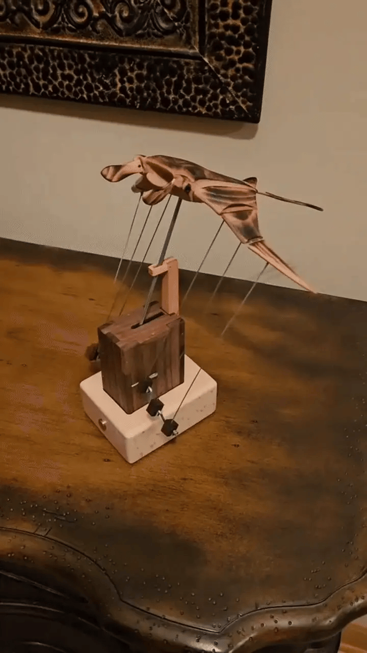 Grâce à un mécanisme biomimétique précis, les ailes ondulent lentement, permettant d'admirer les mouvements de la figurine.